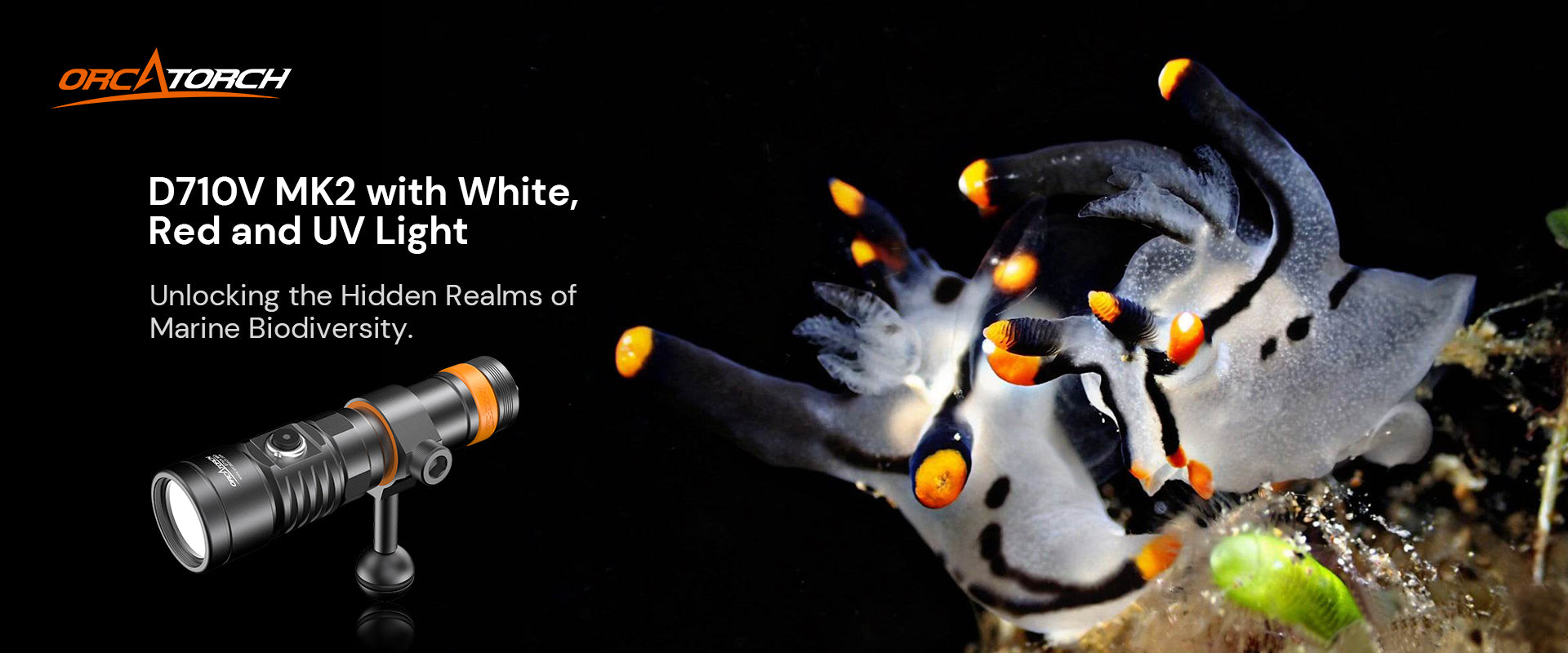 OrcaTorch NEW D710V MK2 Max 2300 Lumens Three-Color Light Source Underwater Video Light and fluorescent diving flashlight