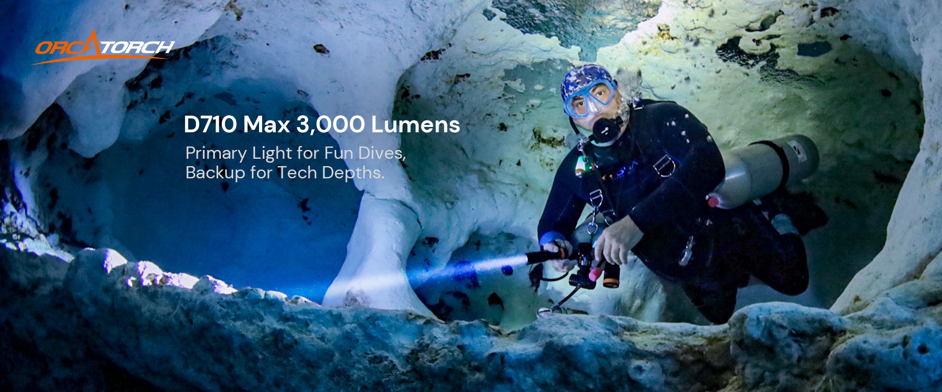 OrcaTorch D710 Max 3000 Lumens Small and Powerful Super Bright Dive Light